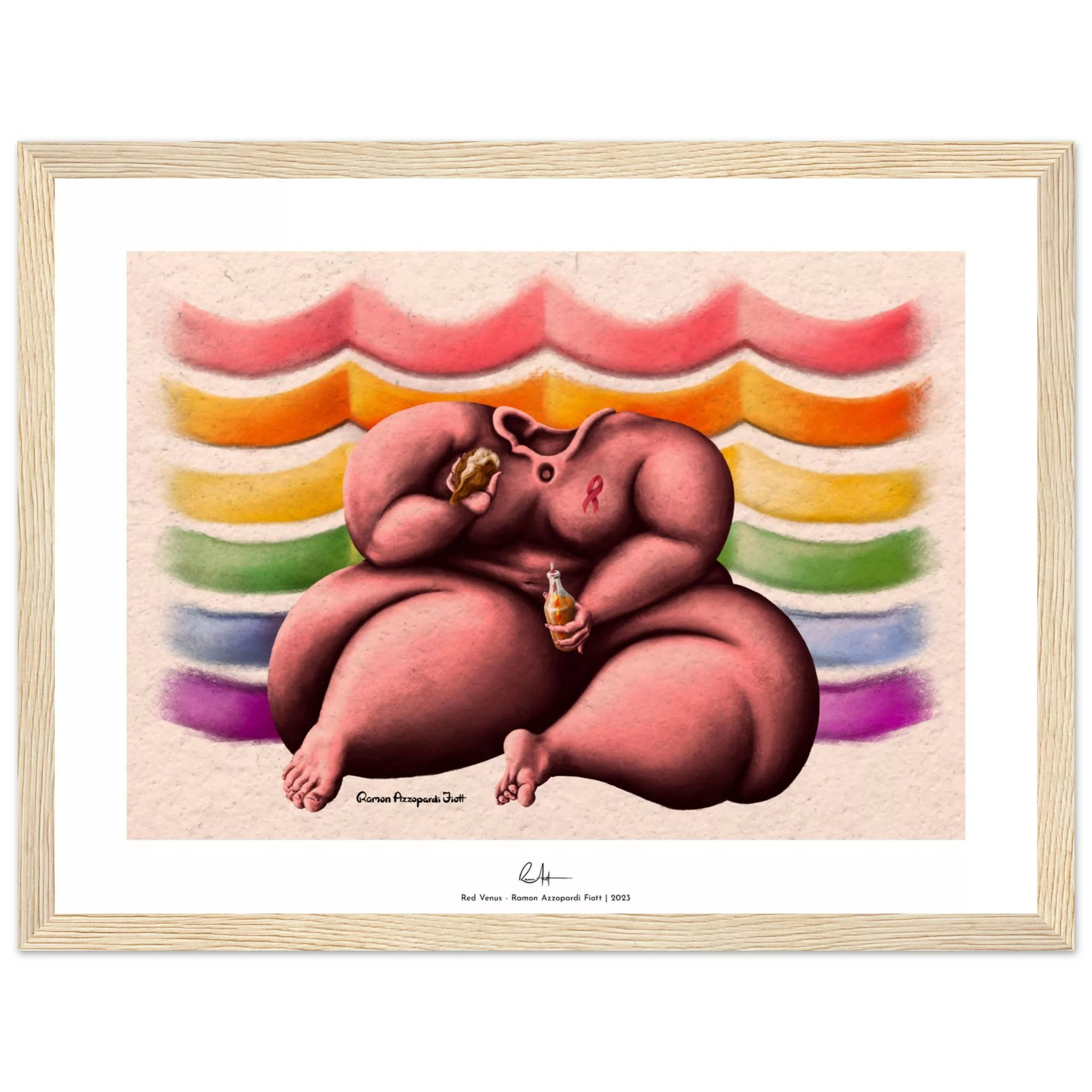 Red Venus | Framed PosterIntroducing the Red Venus Framed Poster, a unique and meaningful design inspired by the neolithic Maltese fertility goddess, affectionately known as “the Fat Lady of Malta“. This design is the result of the ARC // RAFiott Collaboration on EuroPride 2023’s merchandise, and it’s now available for purchase as different RAFiott products.